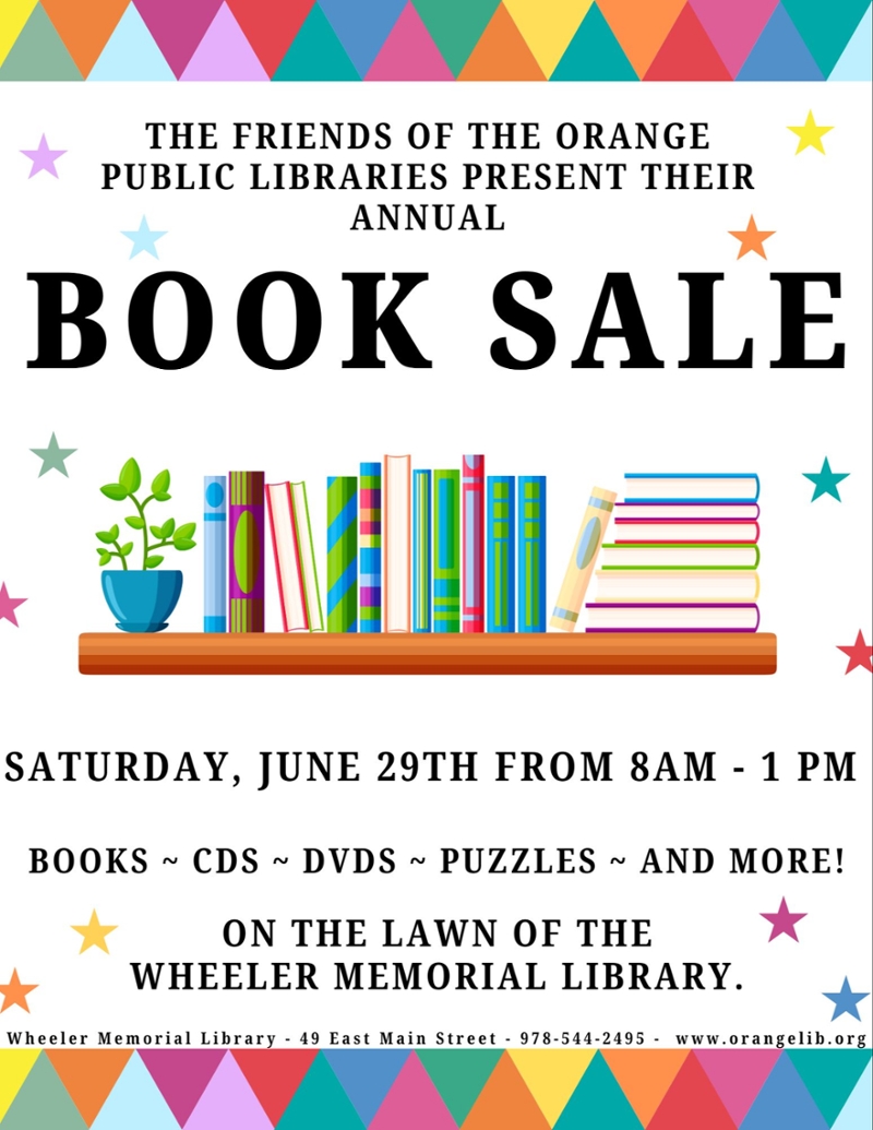 Join us on the lawn of the Wheeler Memorial Library on Saturday, June 29th from 8:00 AM - 1:00 PM for our Book Sale!!