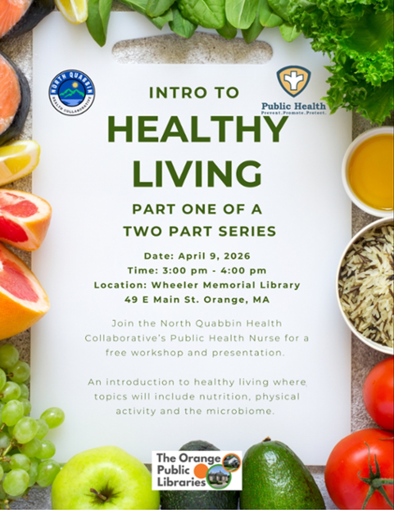 Join the North Quabbin Health Collaborative's Public Health Nurse for a free workshop and presentation on Thursday, April 9th from 3 PM - 4 PM.